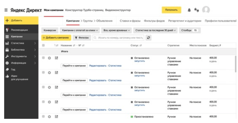 Личный кабинет с общим бюджетом для основных рекламных площадок